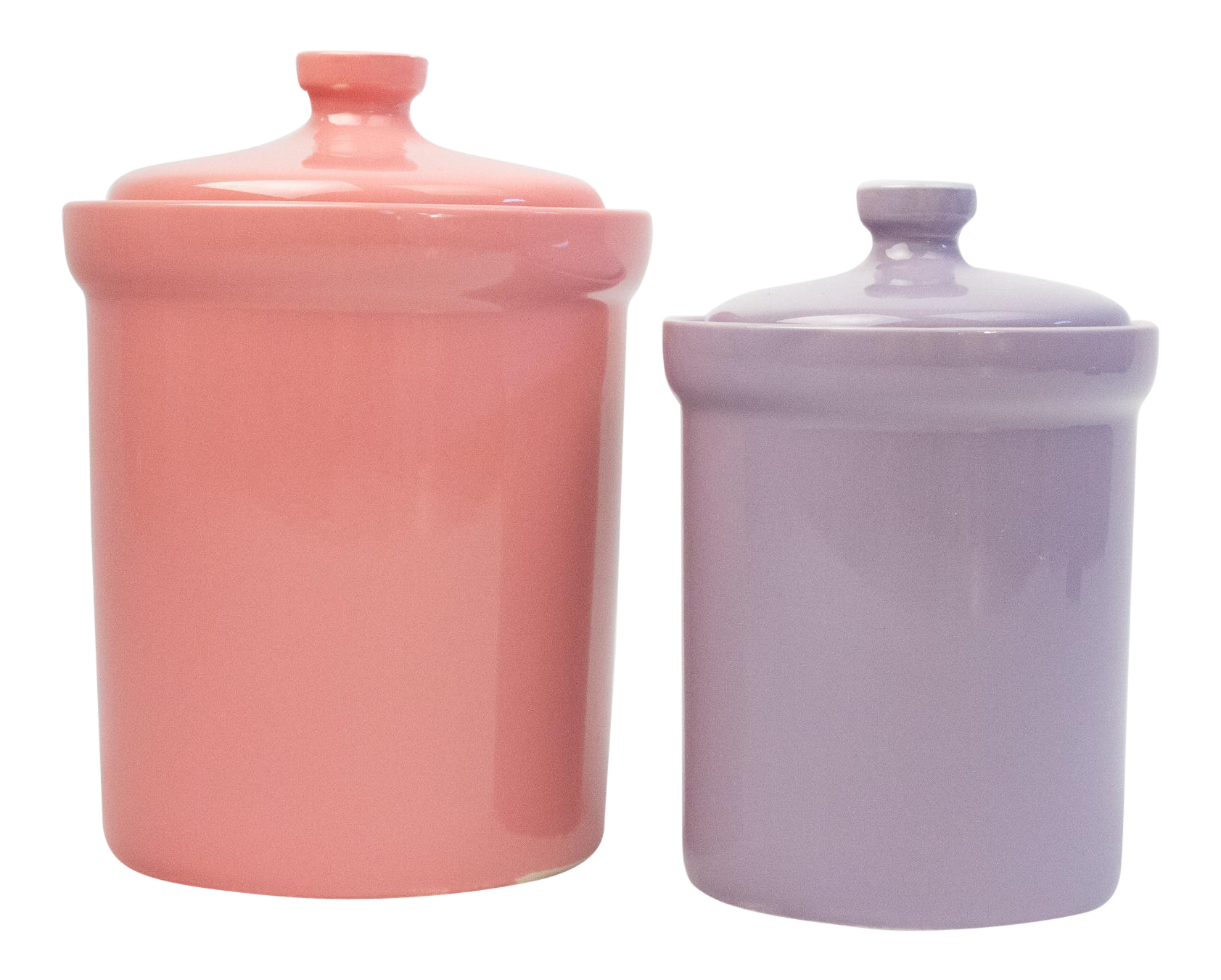Vintage Pink and Purple Ceramic Storage Kitchen Canisters a Pair